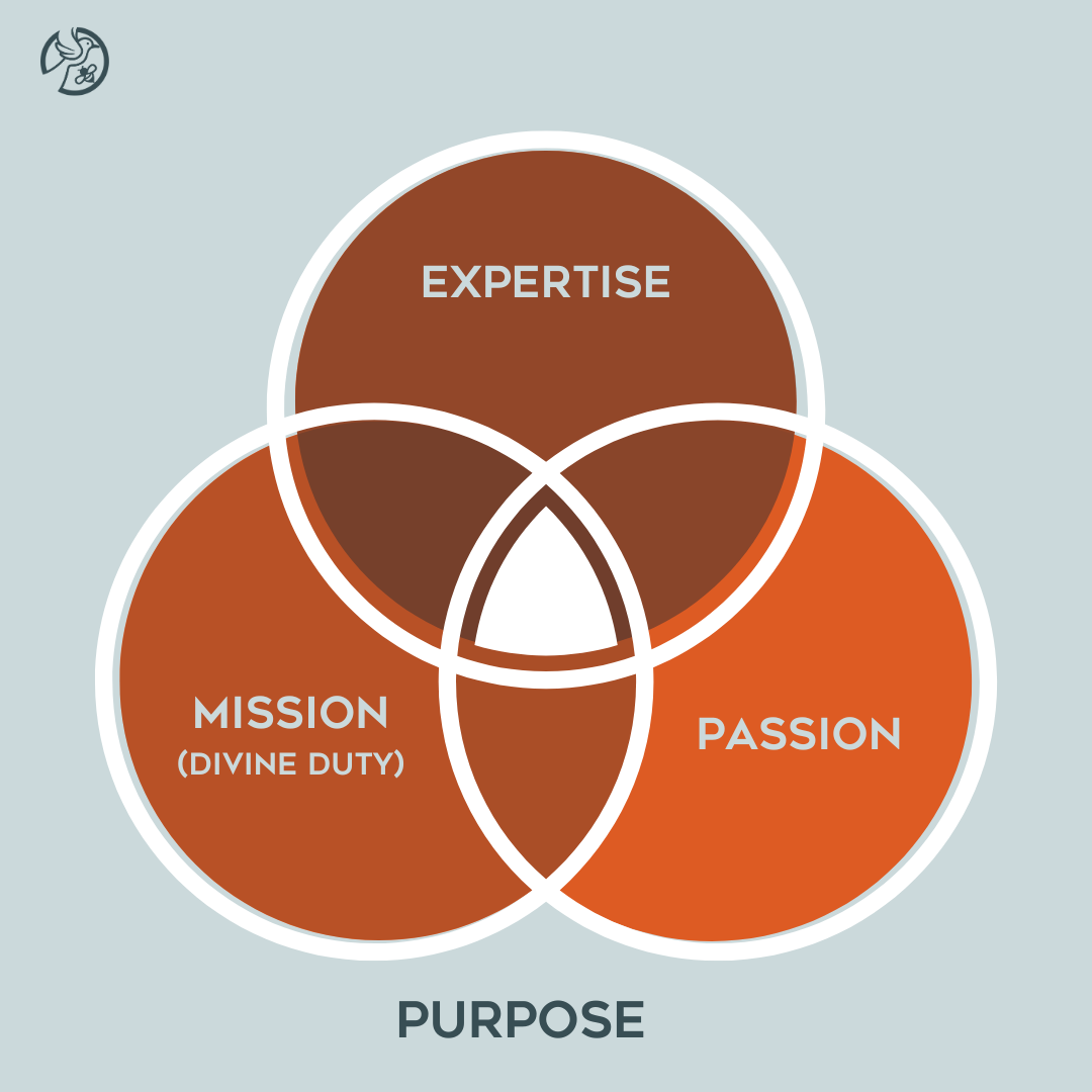 To use the same reference, I, therefore, describe purpose as the moment when an individual finally finds where his widespread skills and passions resonate with his true calling in life.